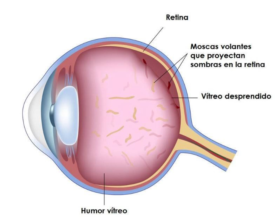 , es más denso que el humor acuoso, el cual se encuentra en el espacio