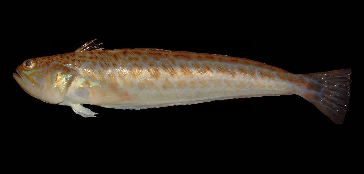 líneas oblicuas pardo amarillentas, una mancha negra en la primera aleta dorsal.