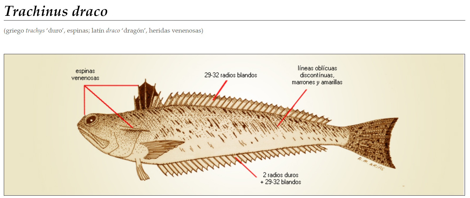 escarapote, sabirón o salvario, ... Con espina venenosa dirigida hacia atrás.